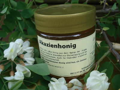 Milder, sehr süßer Honig aus dem Nektar der Akazie/Robinie, besonders zur Blutreinigung und bei Verdauungsstörungen, ... auch für Diabetiker empfohlen wegen hohem Fructose-/ Fruchtzuckeranteil.