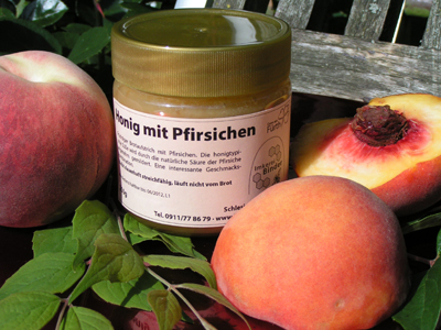 Fruchtiger Brotaufstrich mit Pfirsich. Die honigtypische Süße wird durch die natürliche Säure
